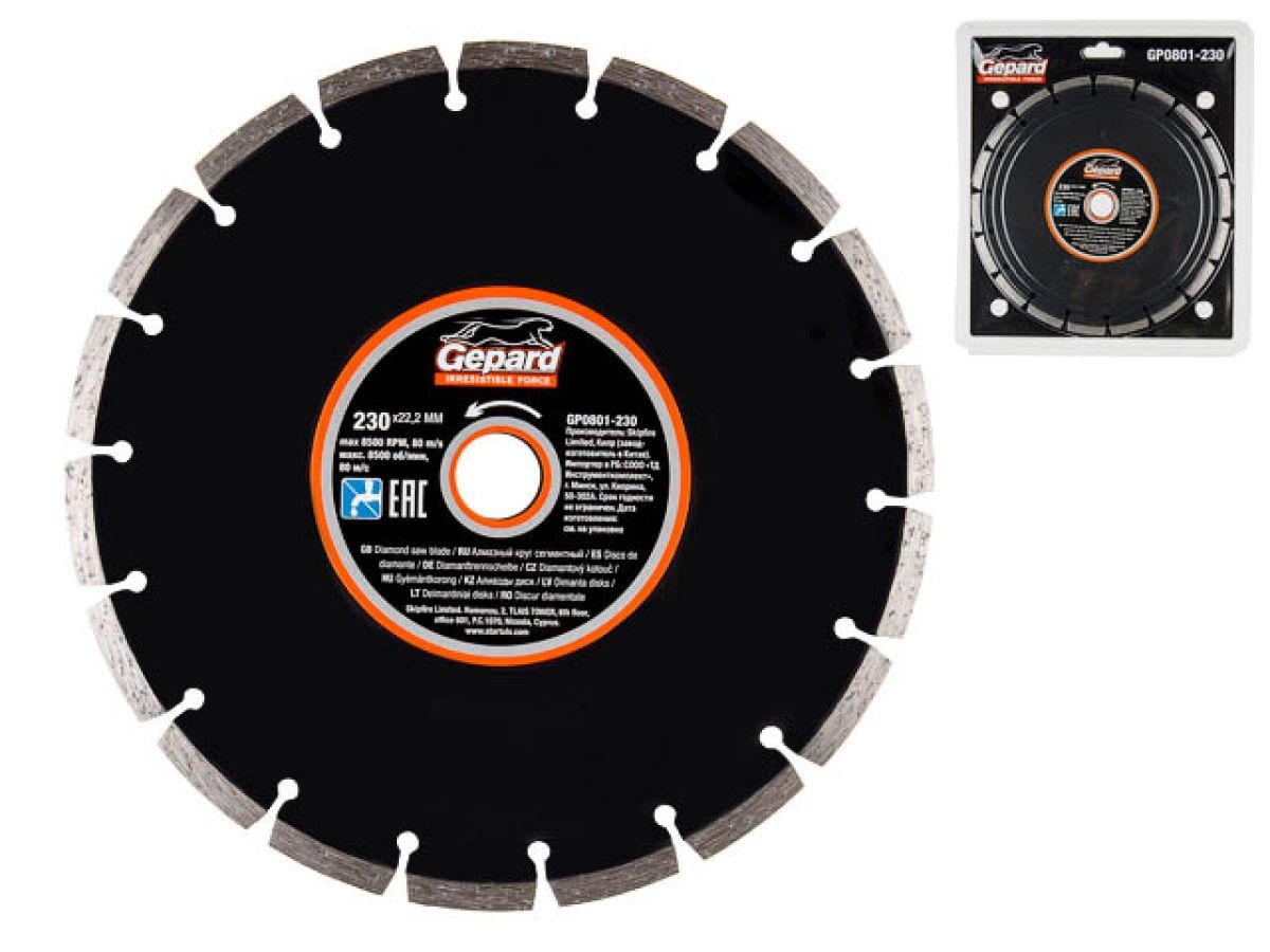 Алмазный круг 230х22 мм универс. сегмент. GEPARD, арт. GP0801-230